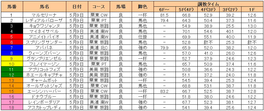ヴィクトリアマイル(G1)出走馬の調教タイム
