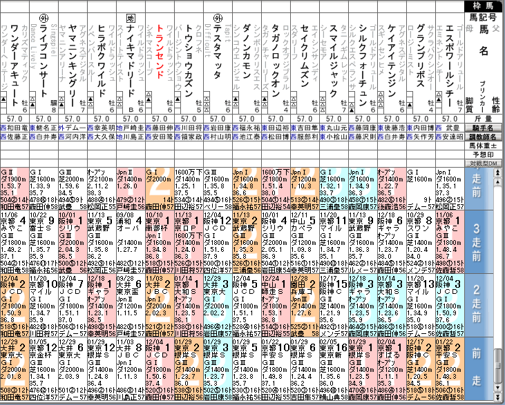 トランセンドが赤文字なのは気にしないでください。個人的に注目している馬なので(笑)